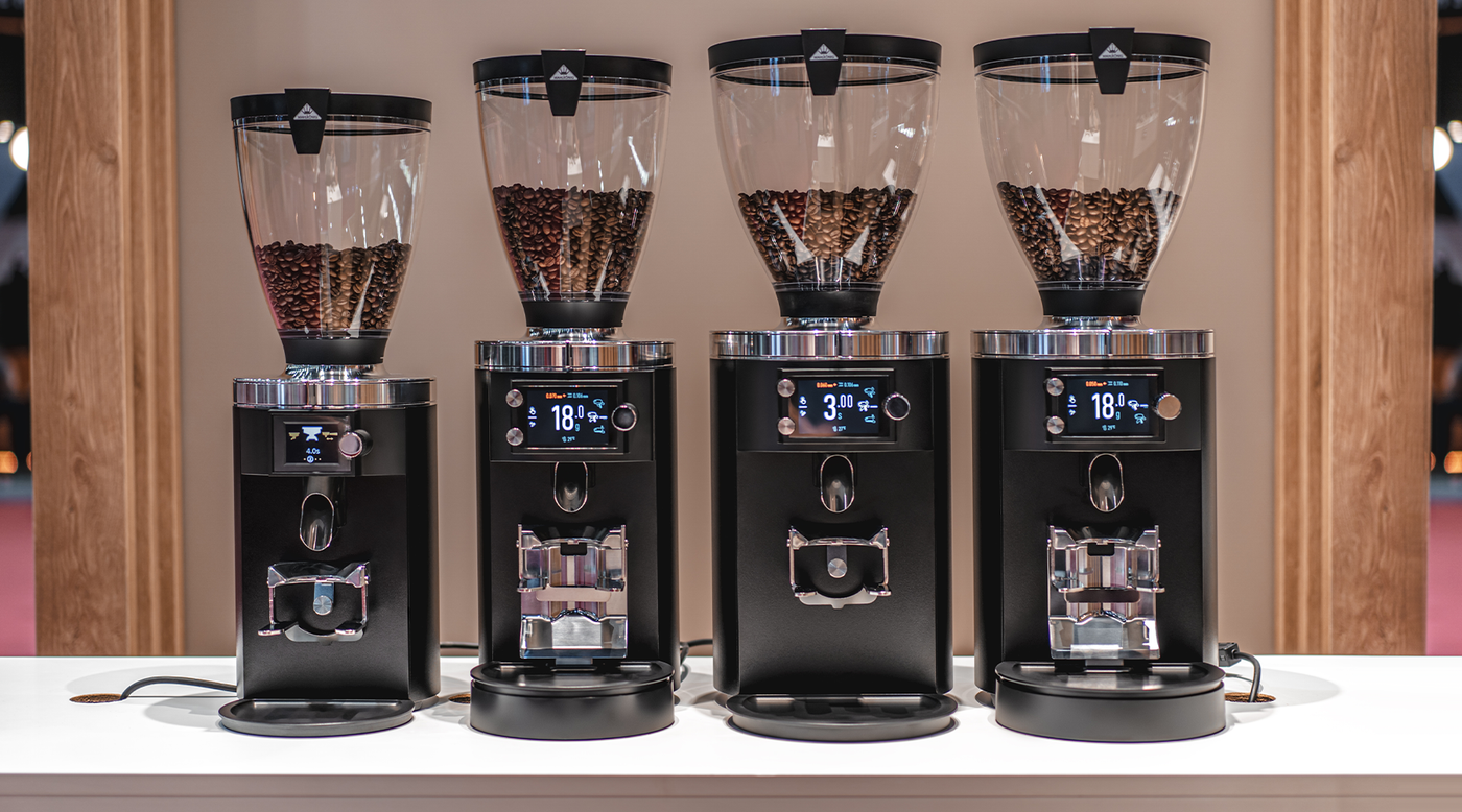 Explore the current line up of premium Mahlkönig coffee grinders for professional use, including the newest Grind-by-Sync.